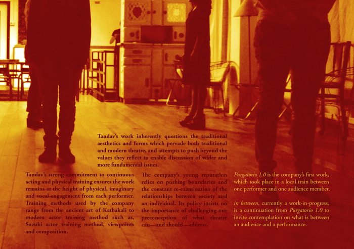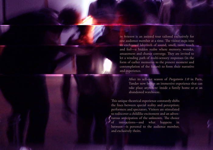 In between was a continuation from Tandav’s first work, Purgatorio 1.0, which took place in a local train between one performer and one audience member. The project seeks to offer the audience member a unique theatrical experience of contemplation on what is between them and a performance.