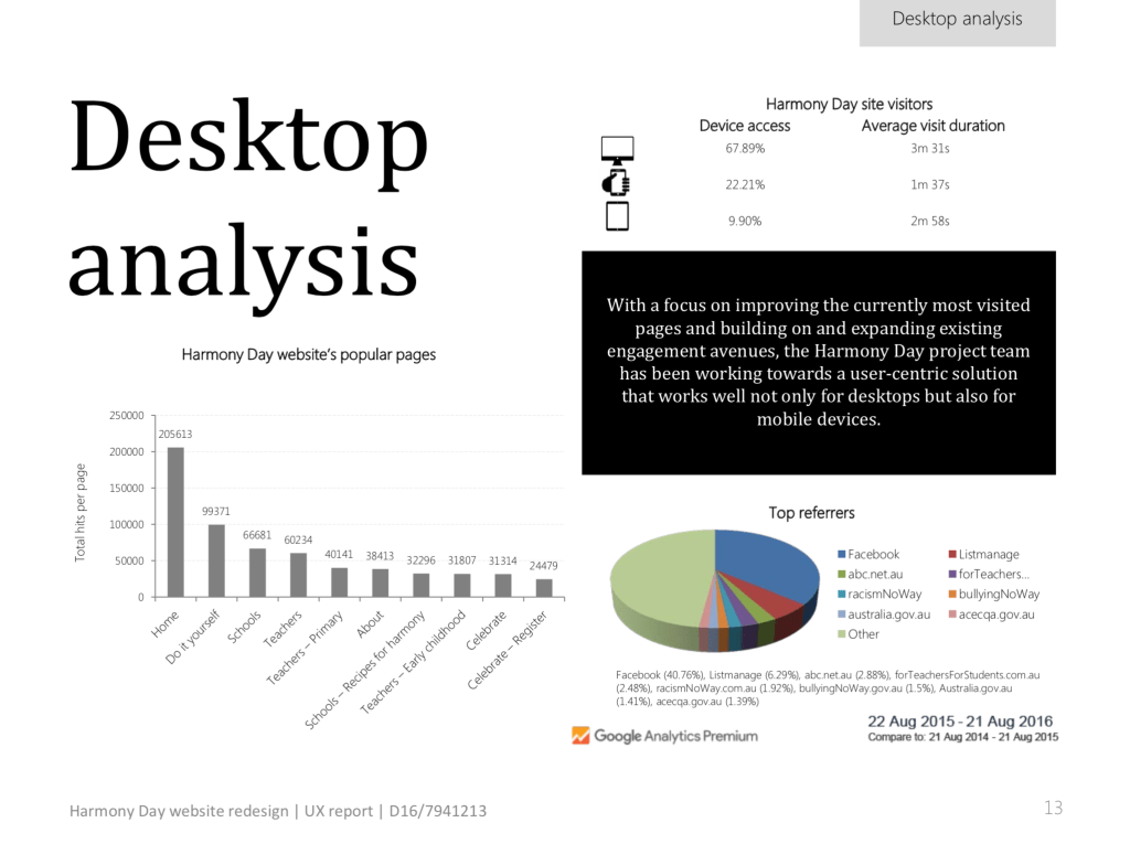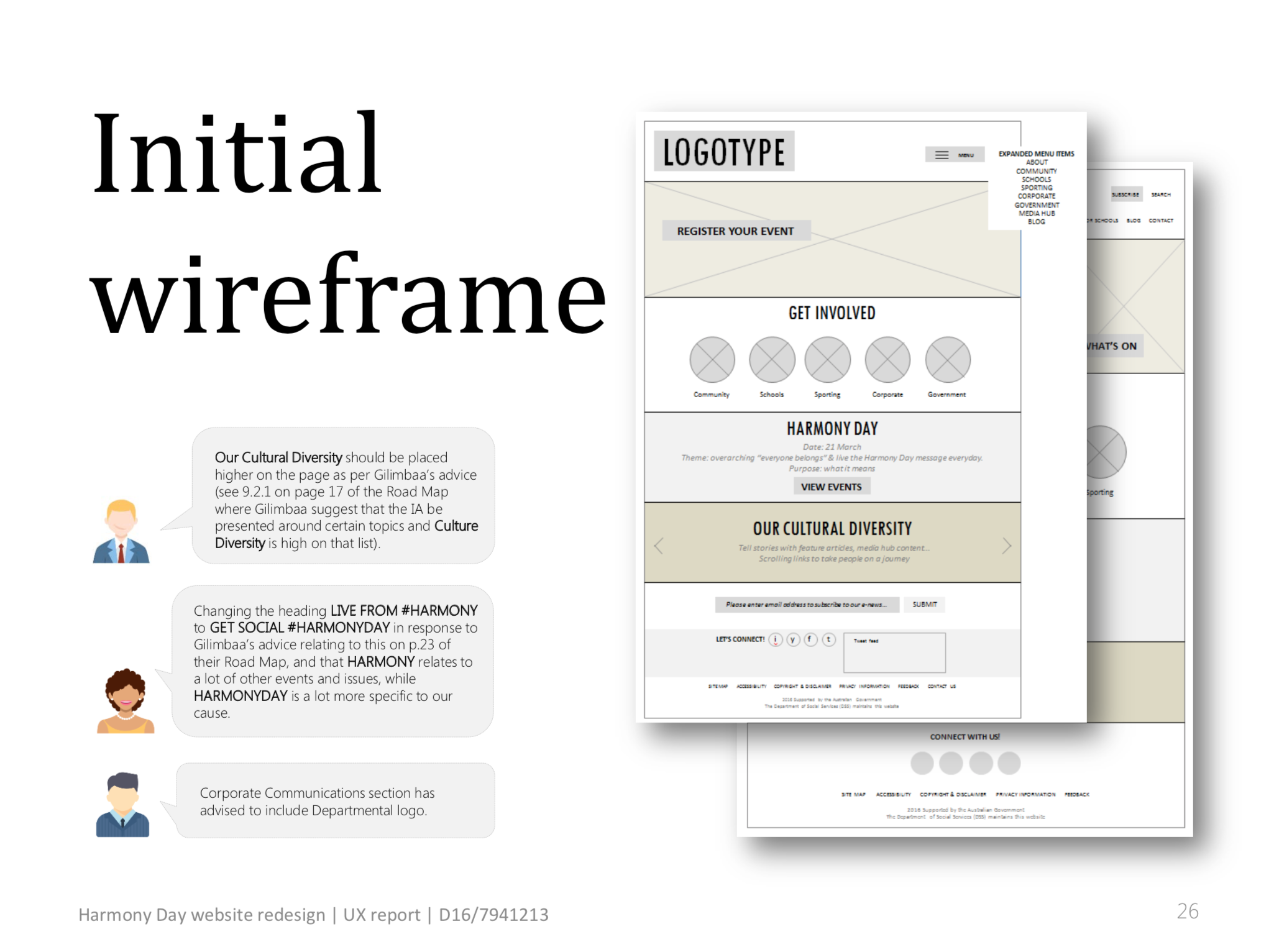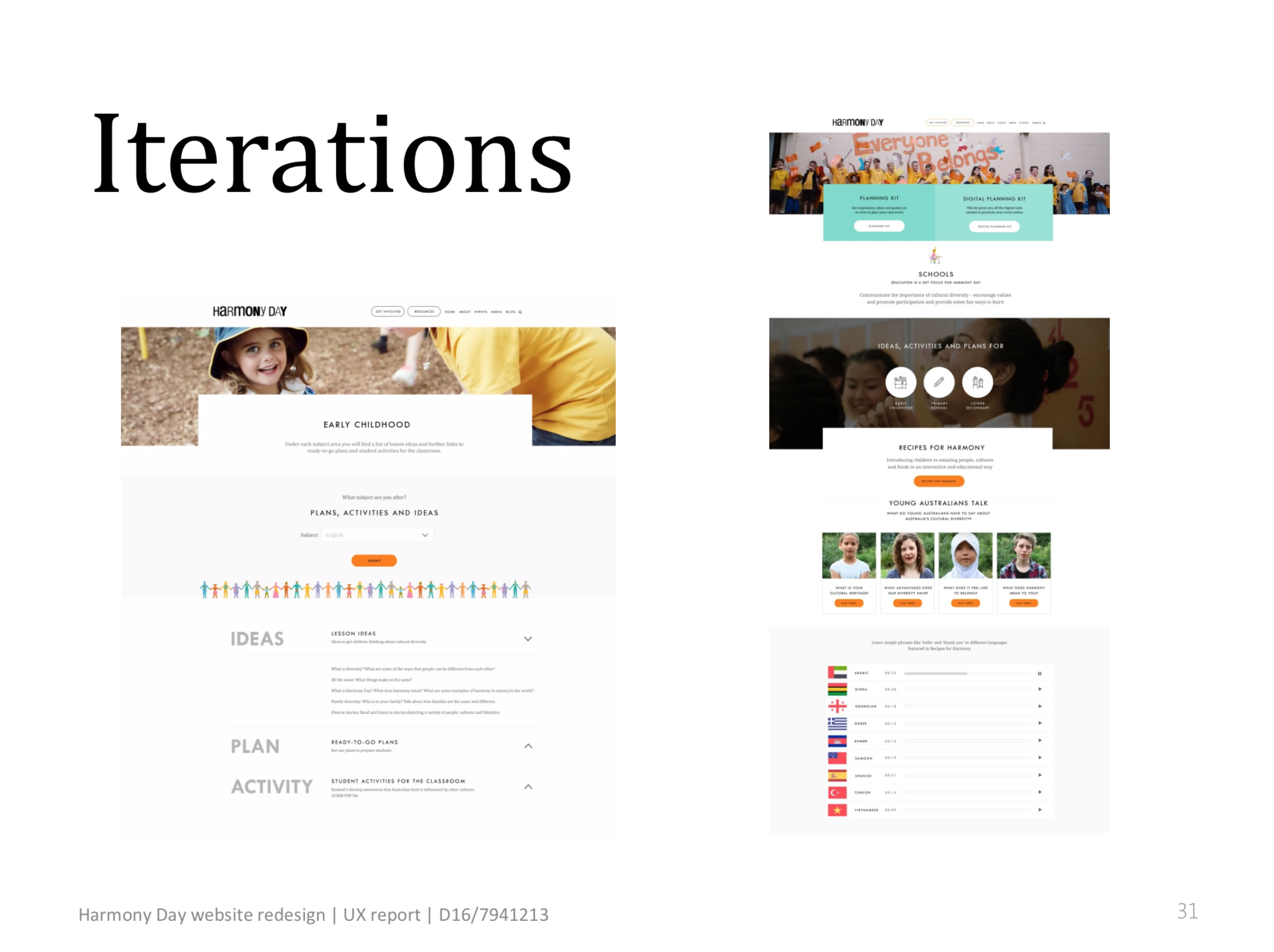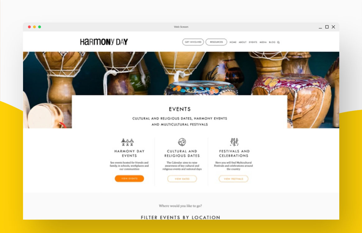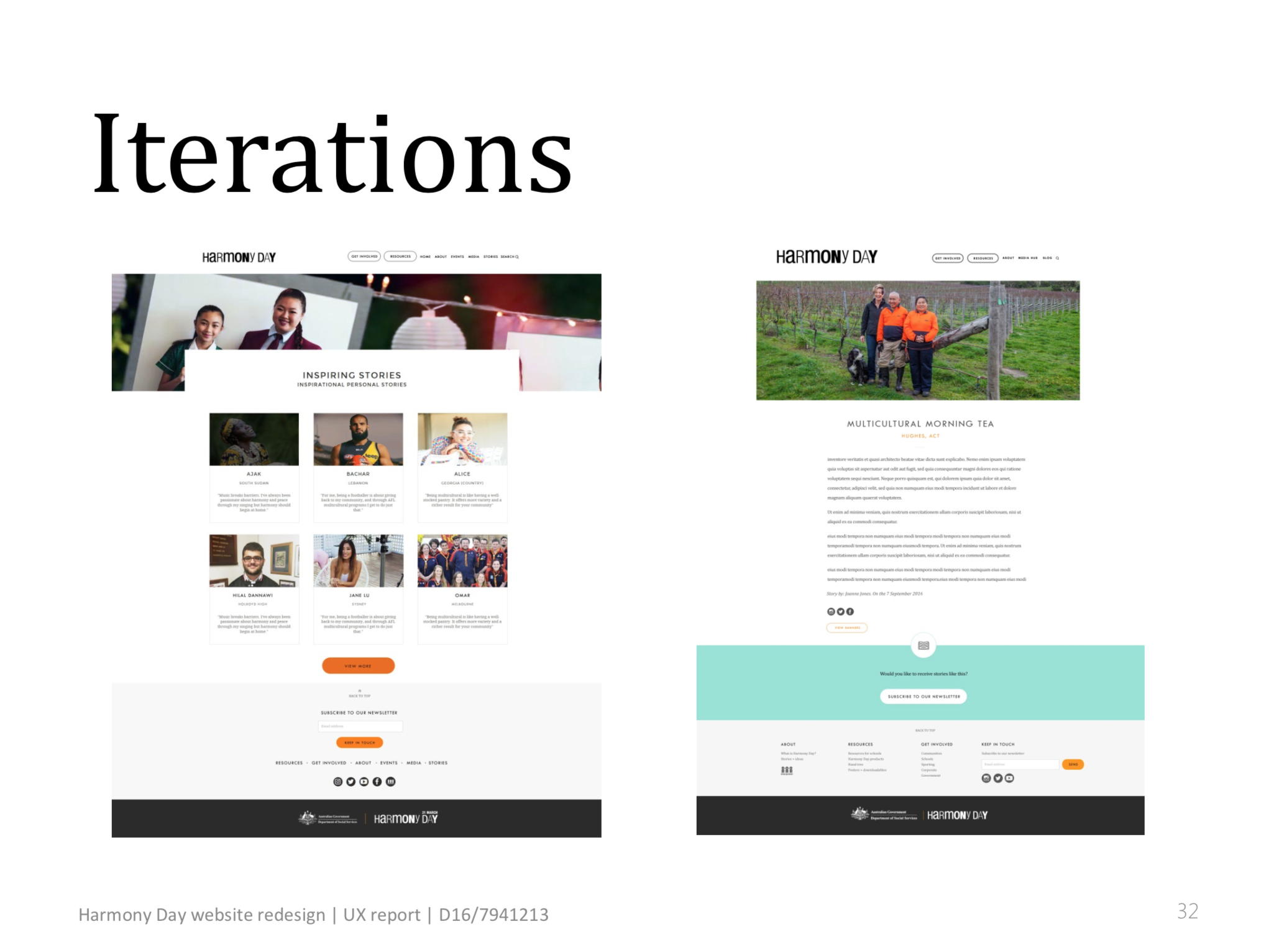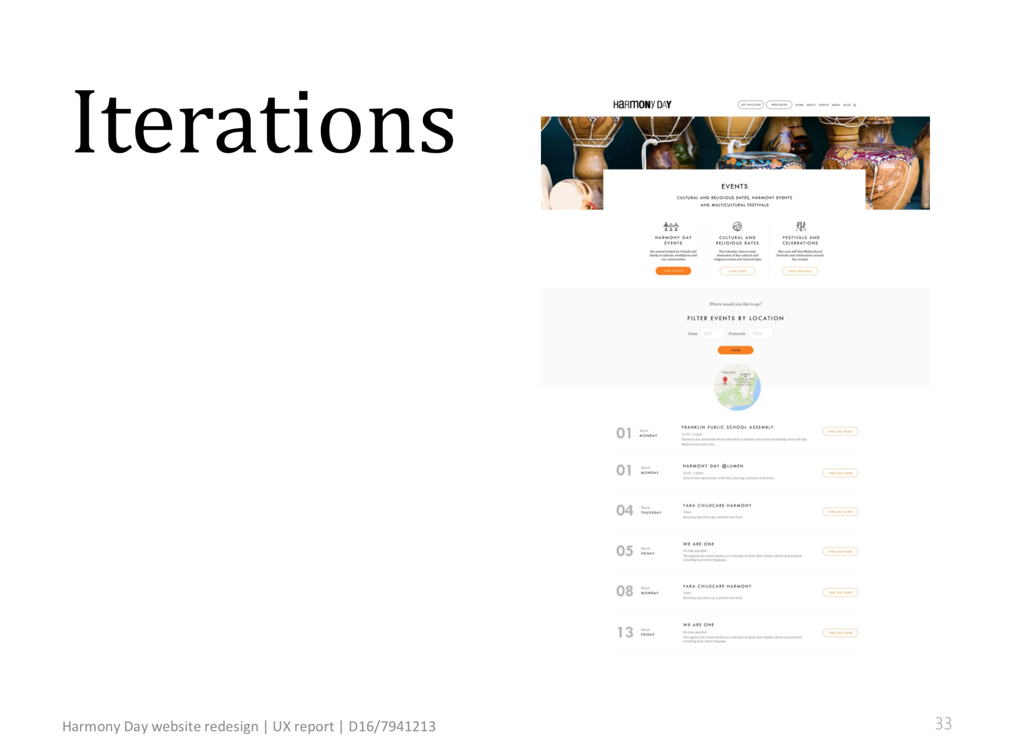We built on shared insights from the Harmony Day 2016 Feedback Survey to further our understanding of how the current website engages with and assists users in participating in events.