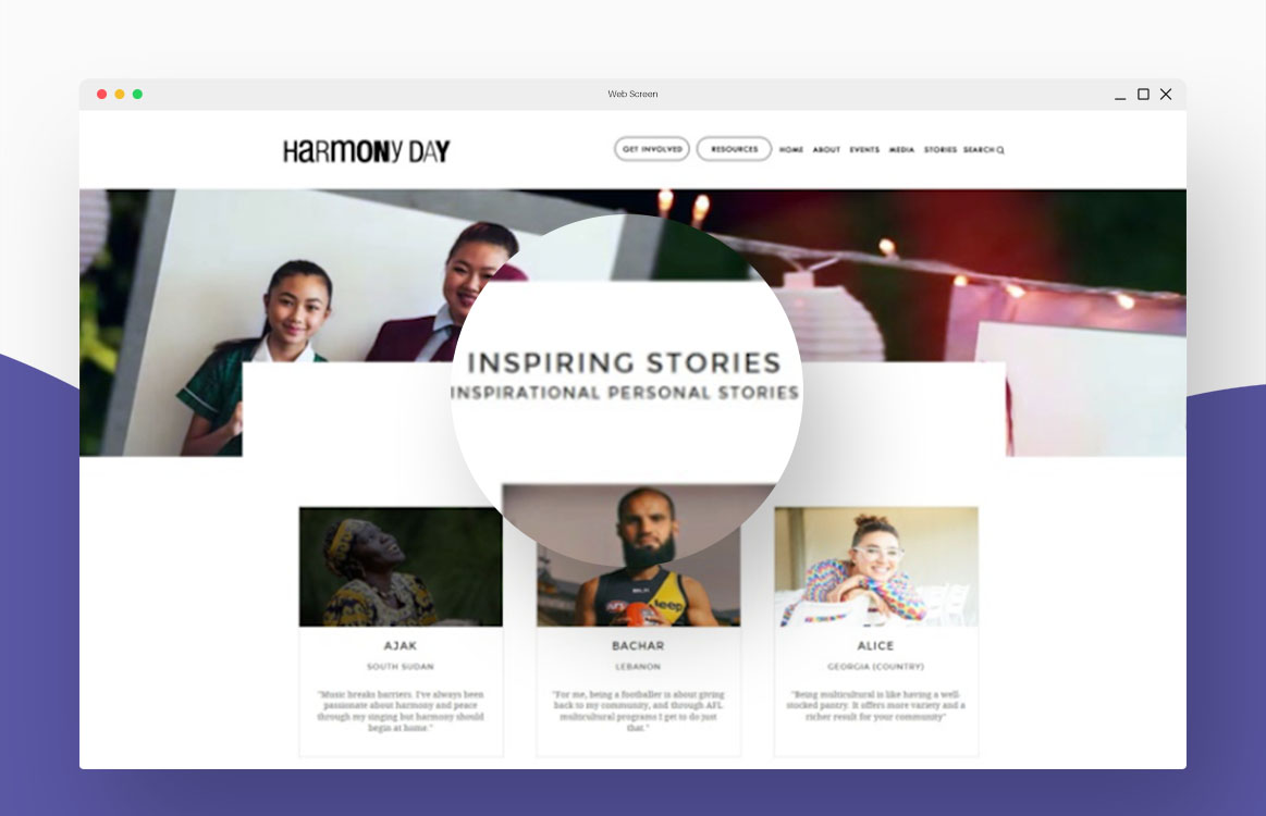 With a focus on improving the currently most visited pages and building on and expanding existing engagement avenues, the Harmony Day project team has been working towards a user-centric solution that works well not only for desktops but also for mobile devices.