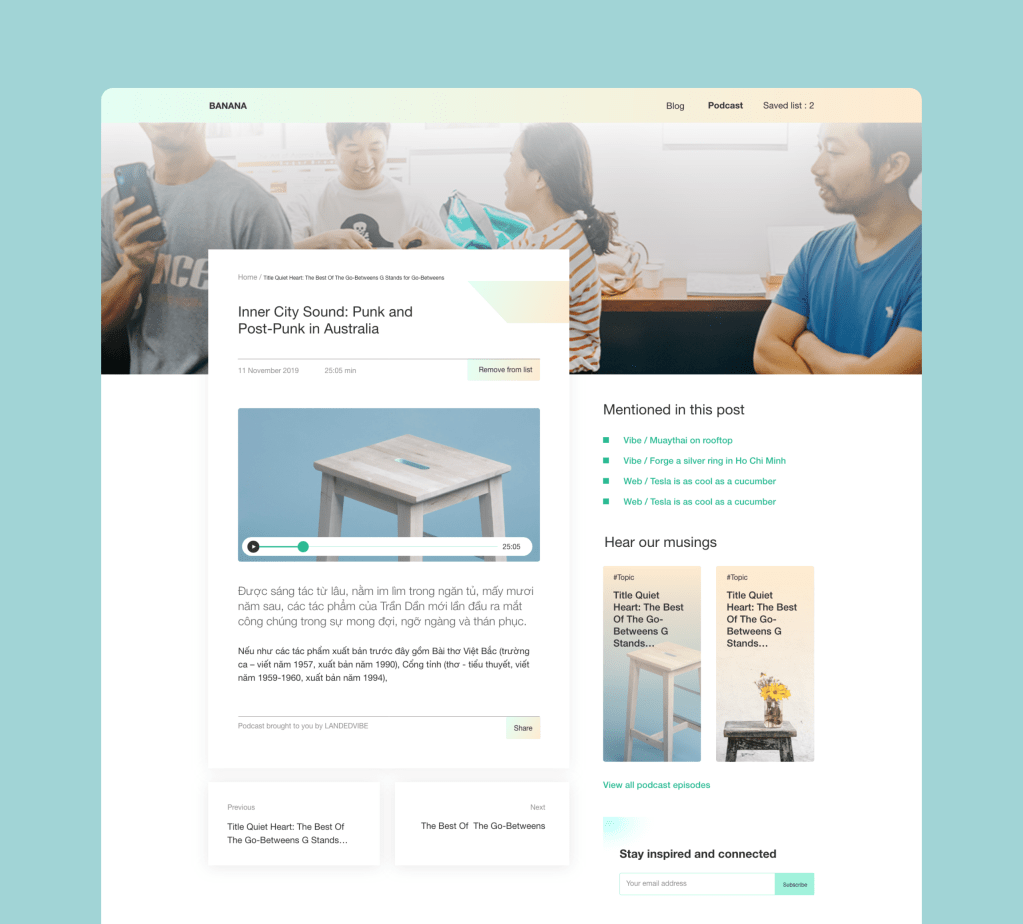 First iteration on a separate platform to host Vibeji’s blog and podcast