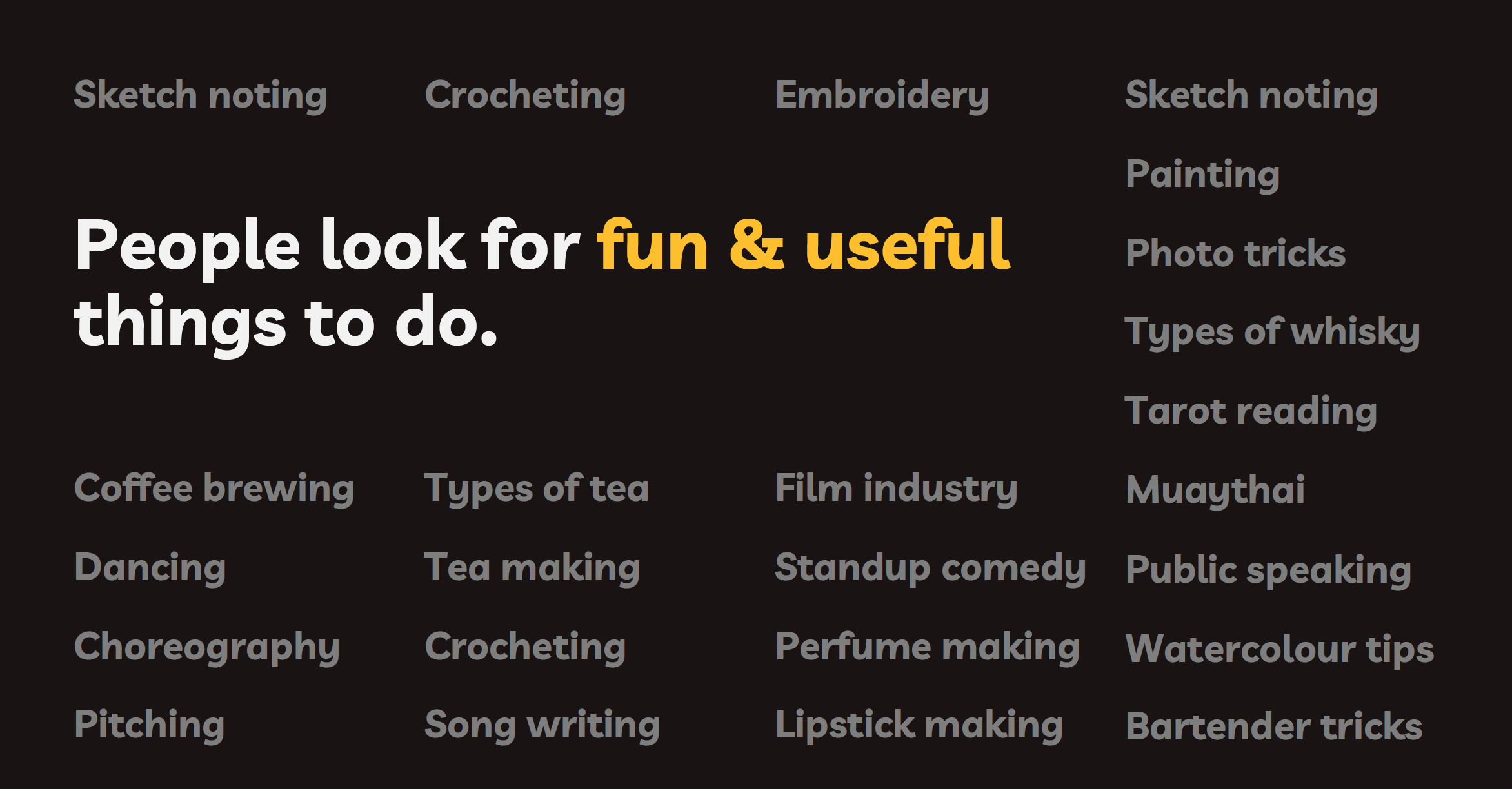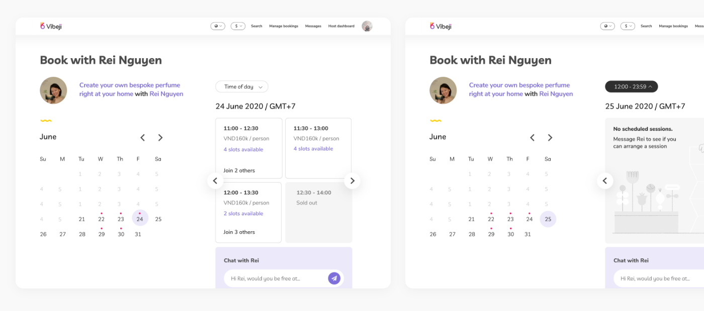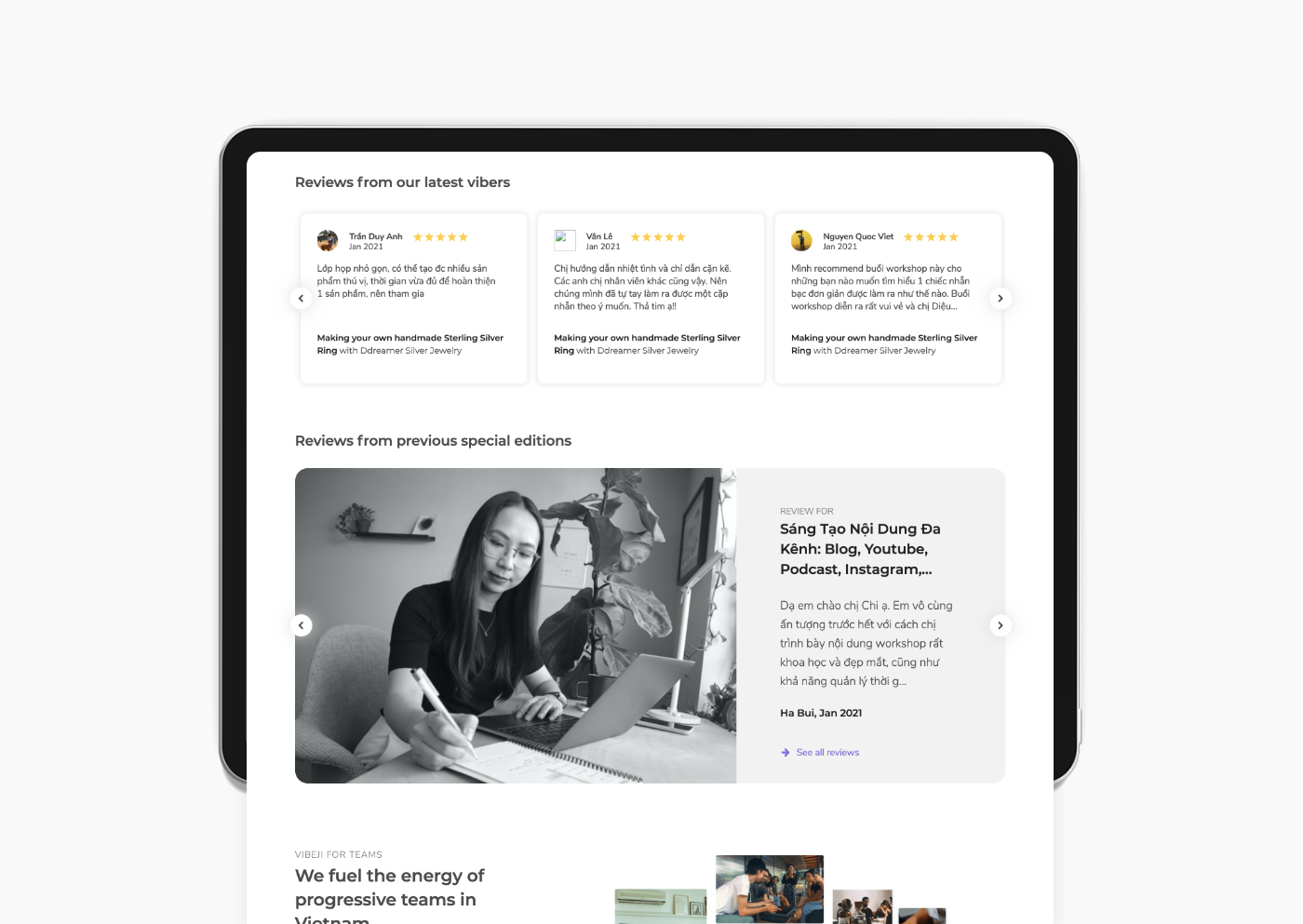 In March 2020, Vibeji focused on onboarding online workshops, launching ten virtual experiences. For this shift, I led significant visual branding, usability testing, and UI enhancement to ensure a seamless transition. Within 4 weeks, we went from 0 to 10 online experiences when we first launched our online collection at the end of March.