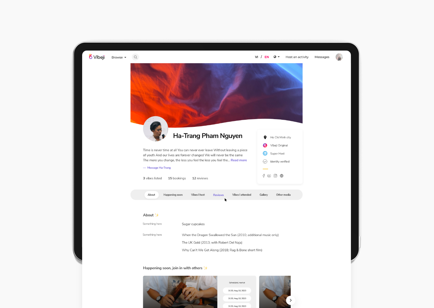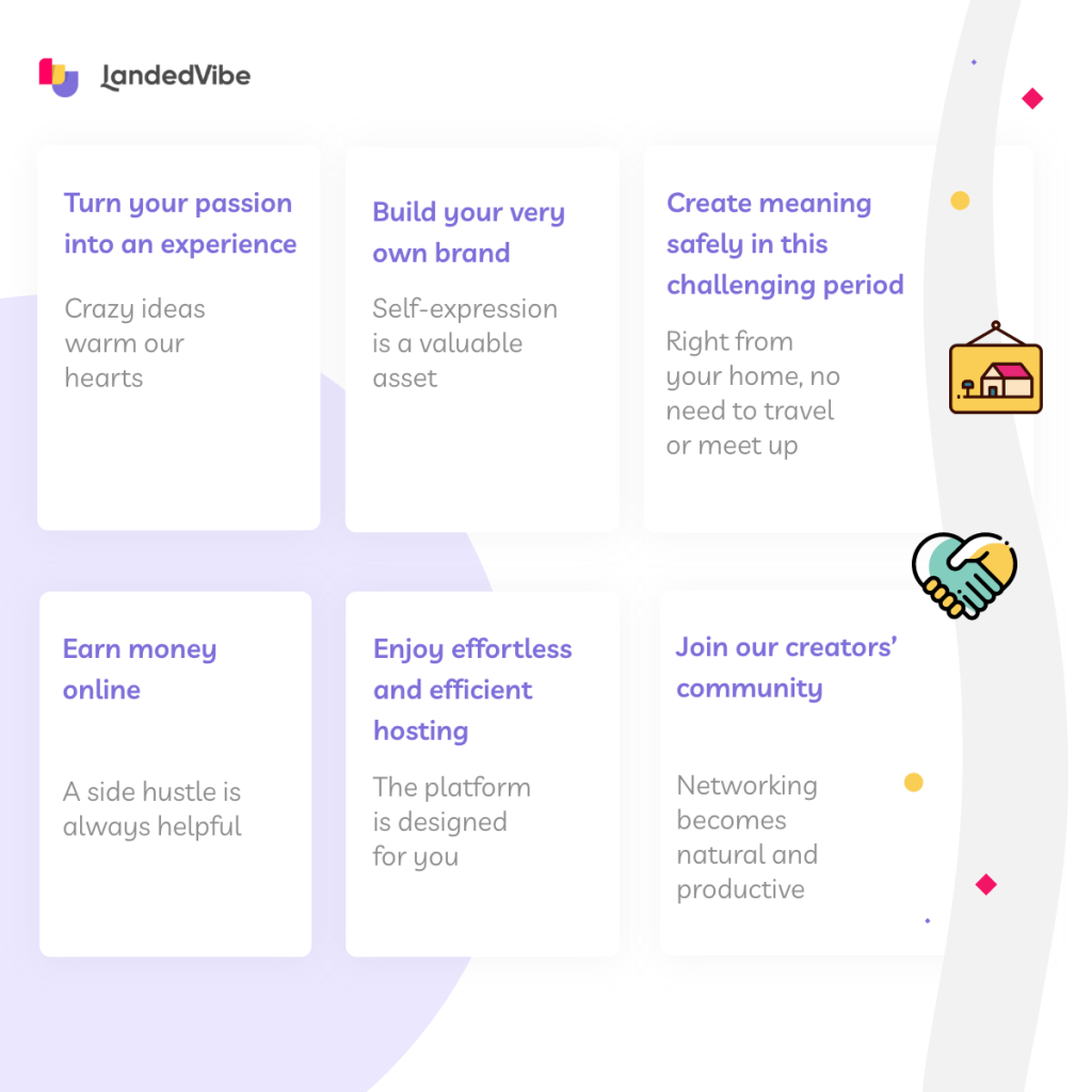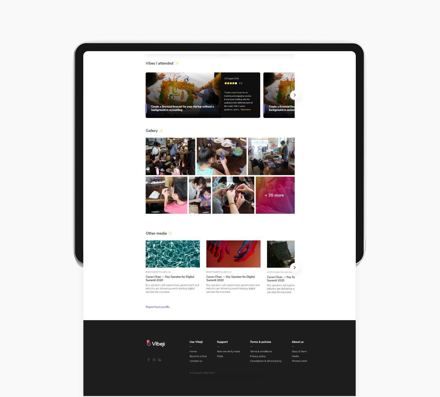 Vibeji.com is an experiential platform that connects hosts with experience seekers. Initially known as LandedVibe, it offered offline workshops but pivoted to online experiences during the COVID-19 pandemic.